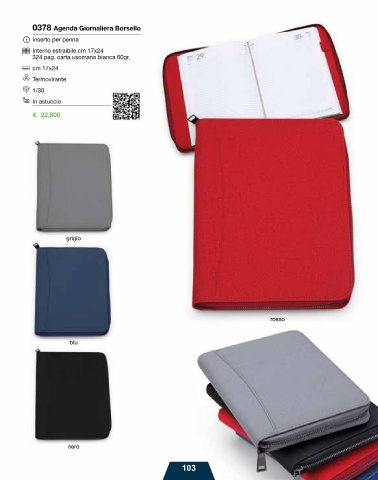 0378 Agenda Giornaliera Borsello Inserto per penna Interno estraibile cm 17x24 324 pag. carta usomano bianca 60gr. cm 17x24 Termovirante 1/30 In astuccio € 22,800 grigio rosso blu nero 103