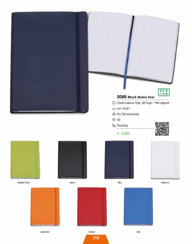 2088 Block Notes flexi Carta bianca 70gr, 80 fogli / 160 pagine cm 15x21 PU Termovirante 50 Polybag € 4,200 verde lime nero blu bianco arancio rosso sky 116