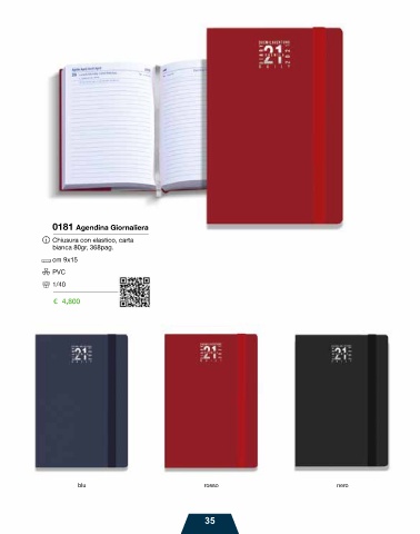 0181 Agendina Giornaliera Chiusura con elastico, carta bianca 80gr, 368pag. cm 9x15 PVC 1/40 € 4,800 blu rosso nero 35