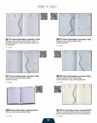 S17 Interno Settimanale cartonato 17x24 GE15 Interno Giornaliero cartonato 15x21