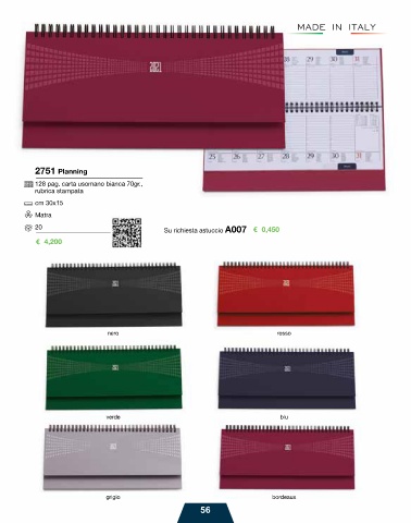 2751 Planning 128 pag. carta usomano bianca 70gr., rubrica stampata cm 30x15 Matra 20 Su richiesta astuccio A007 € 0,450 € 4,200 nero rosso verde blu grigio bordeaux 56