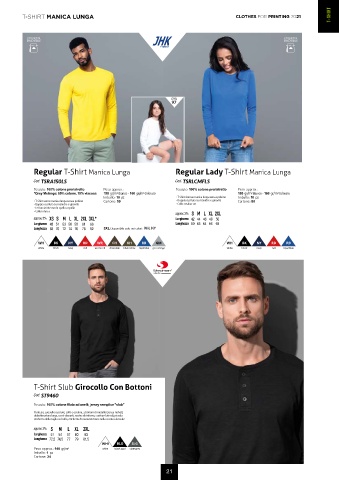 • T-Shirt uomo manica lunga senza polsino Cartone: 50 • Doppia cucitura su maniche e girovita Cartone: 50