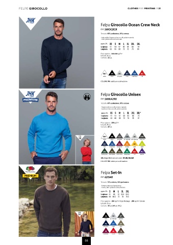 Peso approx.: 260 gr/m 2 Grigio Melange - 280 gr/m 2 Colorato
