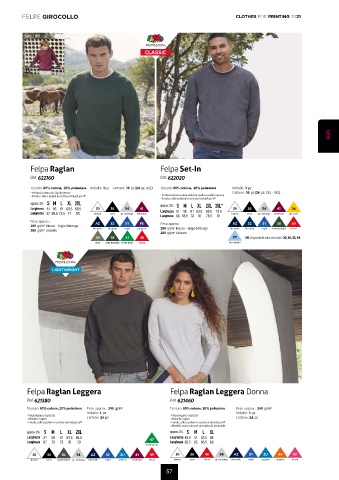 • Maniche raglan Cartone: 24 pz • Maniche raglan Cartone: 24 pz