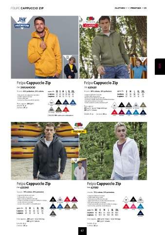• Cordino cappuccio in tinta 67 69 70 71 72 74 • Cordino dello stesso colore 67 70 73 76 79