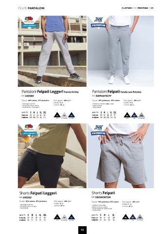 • Felpa leggera sgarzata • Pantalone corto in felpa Imballo: 1 pz