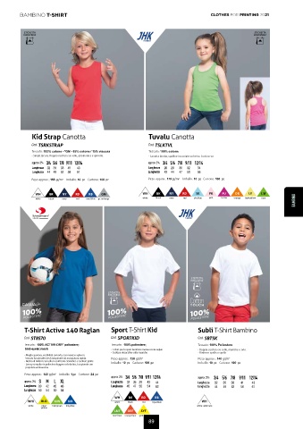 • Single Jersey. Doppia cucitura su collo, giromanica e girovita. • Canotta bimba, spalline incrociate sul retro. Costina 1x1