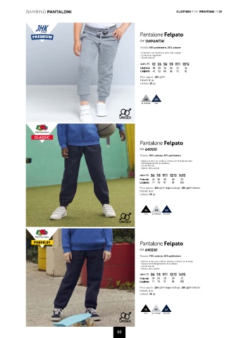 Peso approx.: 260 gr/m 2 Grigio melange - 280 gr/m 2 Colorato