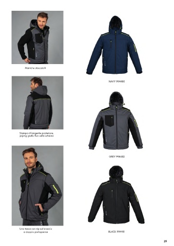 Maniche staccabili NAVY 994480 Stampa rifrangente posteriore, piping giallo fluo sulla schiena GREY 994482 Una tasca con zip sul braccio e doppio portapenne BLACK 994481 25 22/01/21 08:17 SOFTSHELL.indd 7 SOFTSHELL.indd 7 22/01/21 08:17