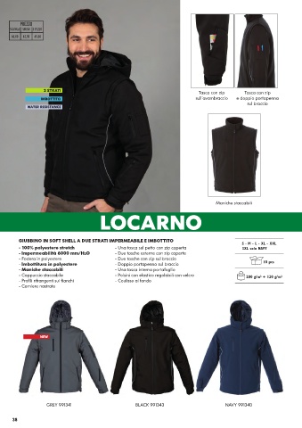 - Cappuccio staccabile - Polsini con elastico regolabili con velcro 280 g/m² + 120 g/m²