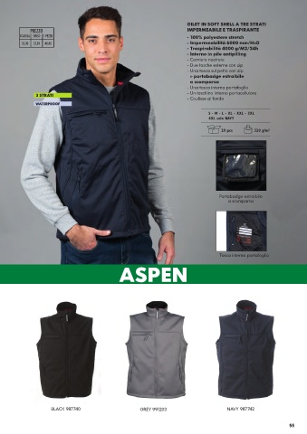 35,00 37,50 40,00 - Impermeabilità 6000 mm/H2O