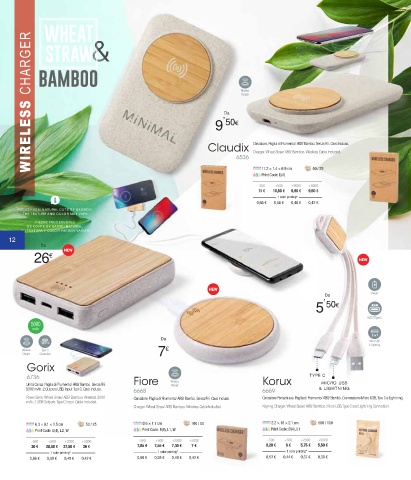 Power Bank. Wheat Straw/ ABS/ Bamboo. Wireless. 5000 Caricatore. Paglia di Frumento/ ABS/ Bambù. Senza Fili. Cavo Incluso. Caricatore Portachiave. Paglia di Frumento/ ABS/ Bambù. Connessione Micro USB, Tipo C e Lightning.