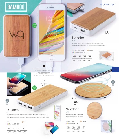 Power Bank. Bamboo. Wireless. 8000 mAh. 2 USB Outputs. Micro USB and Type C Input. Cable Included. Charger. Bamboo. Wireless. Cable Included.