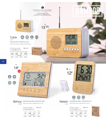 Behox Stazione Meteorologica. Bambù. 2 Batterie AAA Non Incluse. Helein Stazione Meteorologica. Bambù. 2 Batterie AAA Non Incluse.