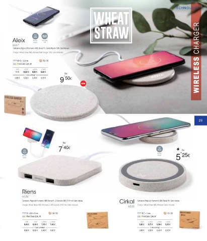 Caricatore. Paglia di Frumento/ ABS. Senza Fili. Carica Rapida 10W. Cavo Incluso.