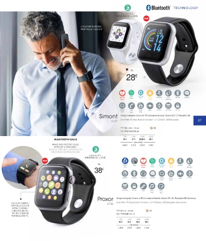 6747 Smart Watch. TPU Strap. Bluetooth Connection. 1,3” LCD Screen. USB Rechargeable. 37