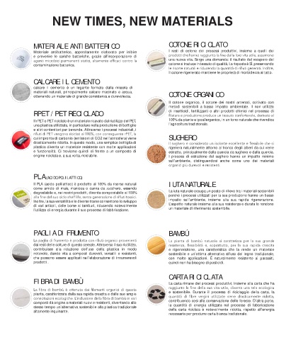Il rPET o PET riciclato è un materiale ricavato dal riutilizzo del PET, 100% da piante e ipoallergenico, in un tono naturale che rivendica