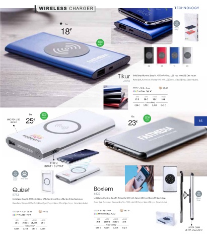 Power Bank. Wireless. 6000 mAh. USB and Type C Output. Micro USB and Type C Input. Cable Not Included. Power Bank. Aluminium. Wireless. Ultra Slim. 5000 mAh. USB Output. Micro USB Input. Cable Included.
