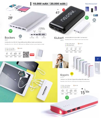 Backers Type-C LIGHTNING TYPE-C OUTPU Kiubert Unitá Carica. 20000 mAh. 2 Outputs USB e 1 Tipo C. Input Tipo C.
