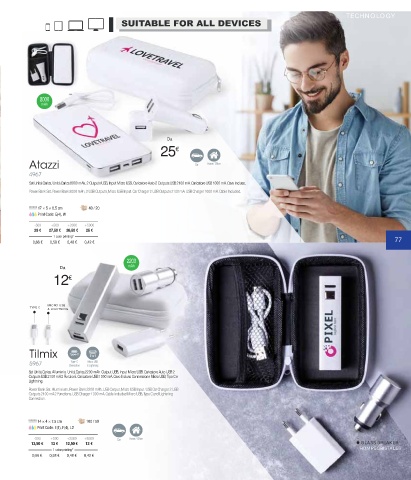 Outputs USB 2100 mA 2 Funzioni. Caricatore USB 1000 mA. Cavo Incluso Connessione Micro USB, Tipo C e