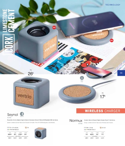 Speaker. Limestone Cement/ Natural Cork. Bluetooth Connection. Power 3W. USB Rechargeable. Cable Included. Charger. Limestone Cement/ Natural Cork. Wireless. Cable Included.
