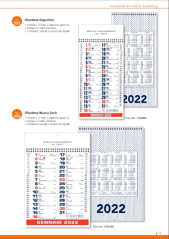 305 • mensile a 12 fogli + copertina generica GENNAIO 2022 F.to mm. 210x460