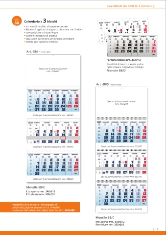 La misura del calendario steso diventa mm. 340x680 Spazio per la personalizzazione mm. 333x45
