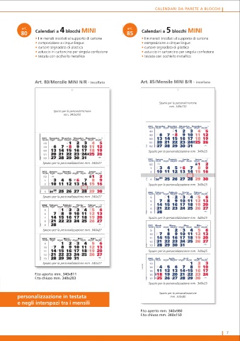 80 Calendari a 4 blocchi MINI 85 Calendari a 5 blocchi MINI