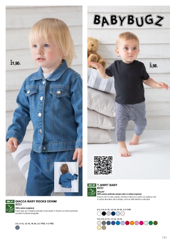 • alcuni colori in cotone organico, interlock • fettuccia a costine con elastan al collo