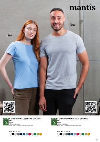 143.48 T-SHIRT DONNA ESSENTIAL ORGANIC 142.48 T-SHIRT UOMO ESSENTIAL ORGANIC