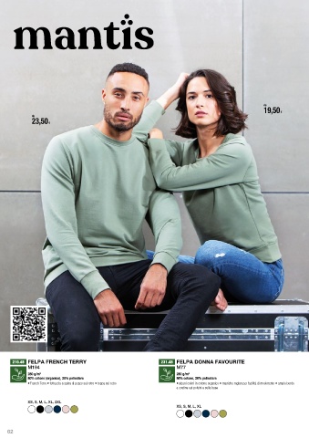 • French Terry • fettuccia a spina di pesce sul retro • toppa sul retro • alcuni colori in cotone organico • maniche raglan per facilità di movimento • ampio bordo