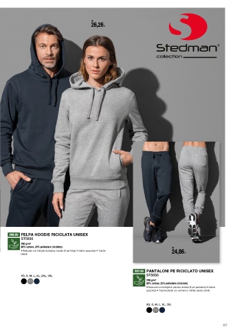 • Realizzato con bottiglie di plastica riciclata (6 per felpa) • Interno spazzolato • Tasche