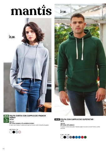 80% cotone (organico), 20% polietilene (riciclato) 330 g/m²