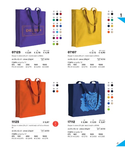 Shopper in cotone 220 g/m , manici lunghi e soffietto Shopper in cotone 280 g/m , manici lunghi e soffietto