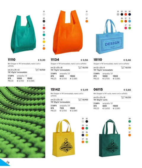 Mini Shopper in TNT termosaldato, manici corti e Shopper in TNT termosaldato, manici corti e soffietto Shopper in TNT termosaldato, manici corti e soffietto