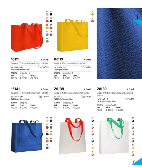 Shopper in TNT termosaldato, manici lunghi e soffietto Shopper in TNT termosaldato, manici lunghi colorati Shopper in TNT termosaldato, manici lunghi colorati e