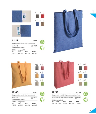 Shopper in cotone riciclato 150 g/m , manici lunghi Shopper in cotone riciclato 150 g/m , manici lunghi e soffietto