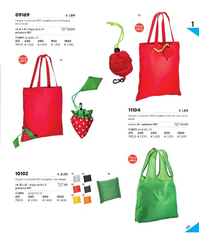 Shopper in poliestere 190T ripiegabile a forma di fragola,