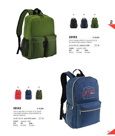 Zaino in nylon 420D con 4 tasche di cui 2 laterali