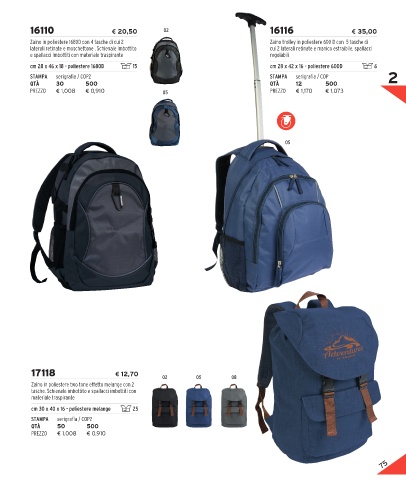 cm 28 x 46 x 18 - poliestere 1680D 15 cm 28 x 42 x 16 - poliestere 600D 6