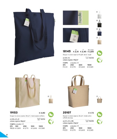 Shopper in cotone organico 140 g/m , manici lunghi e soffietto Shopper in cotone organico 120 g/m , manici corti e